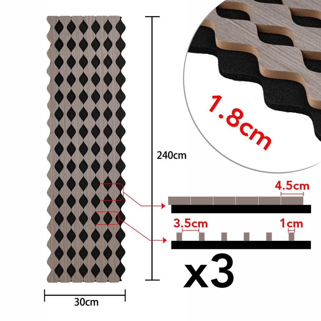Set 3 Panouri riflaj acustic decorativ, MDF si pasla, Naimeed D6234, 240x30x1.8cm, Gri