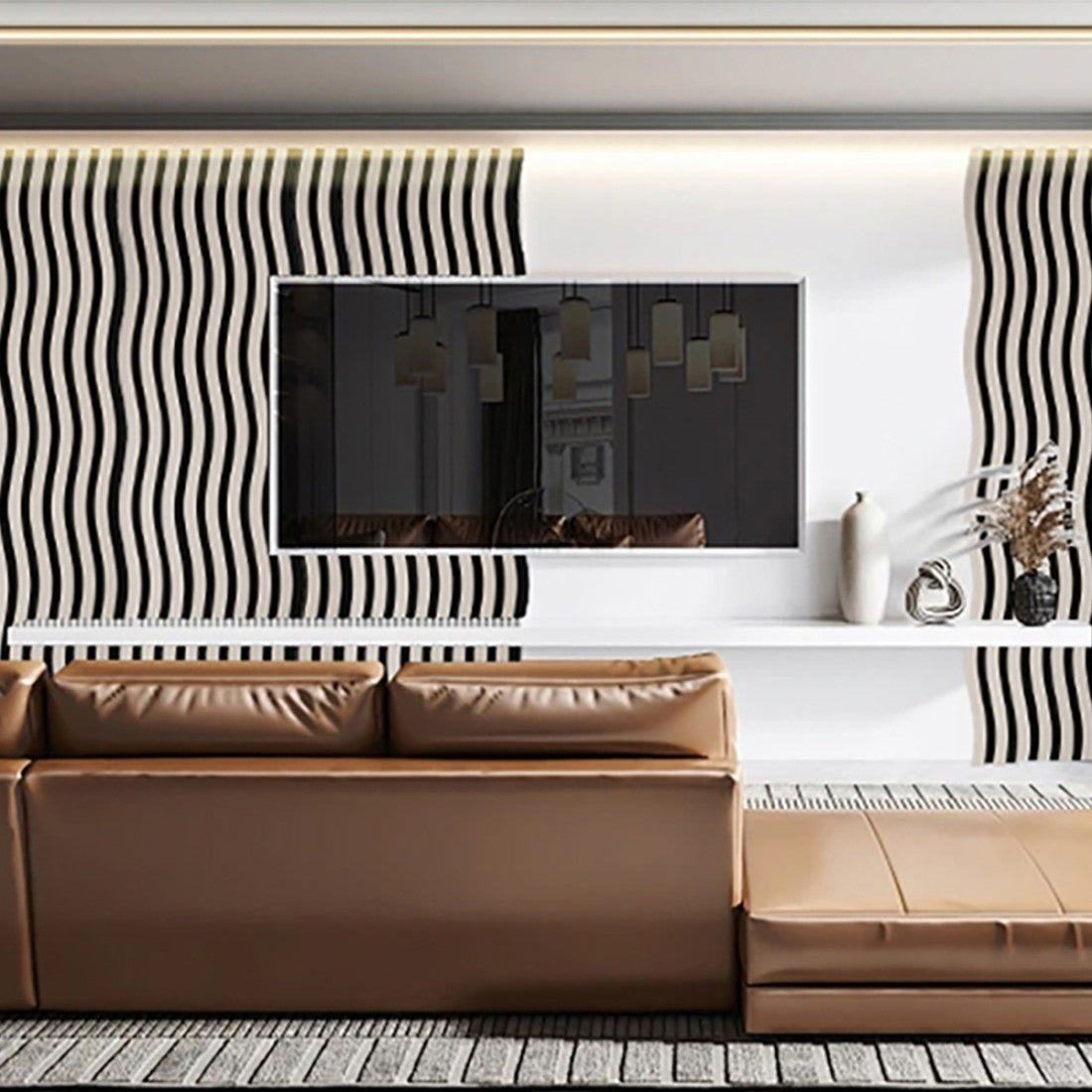 Set 3 Panouri riflaj acustic decorativ, MDF si pasla, Naimeed D6247, 240x30x1.8cm, Gri