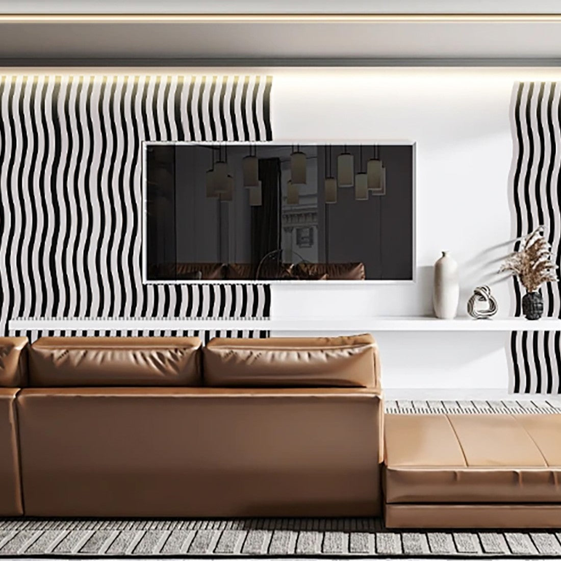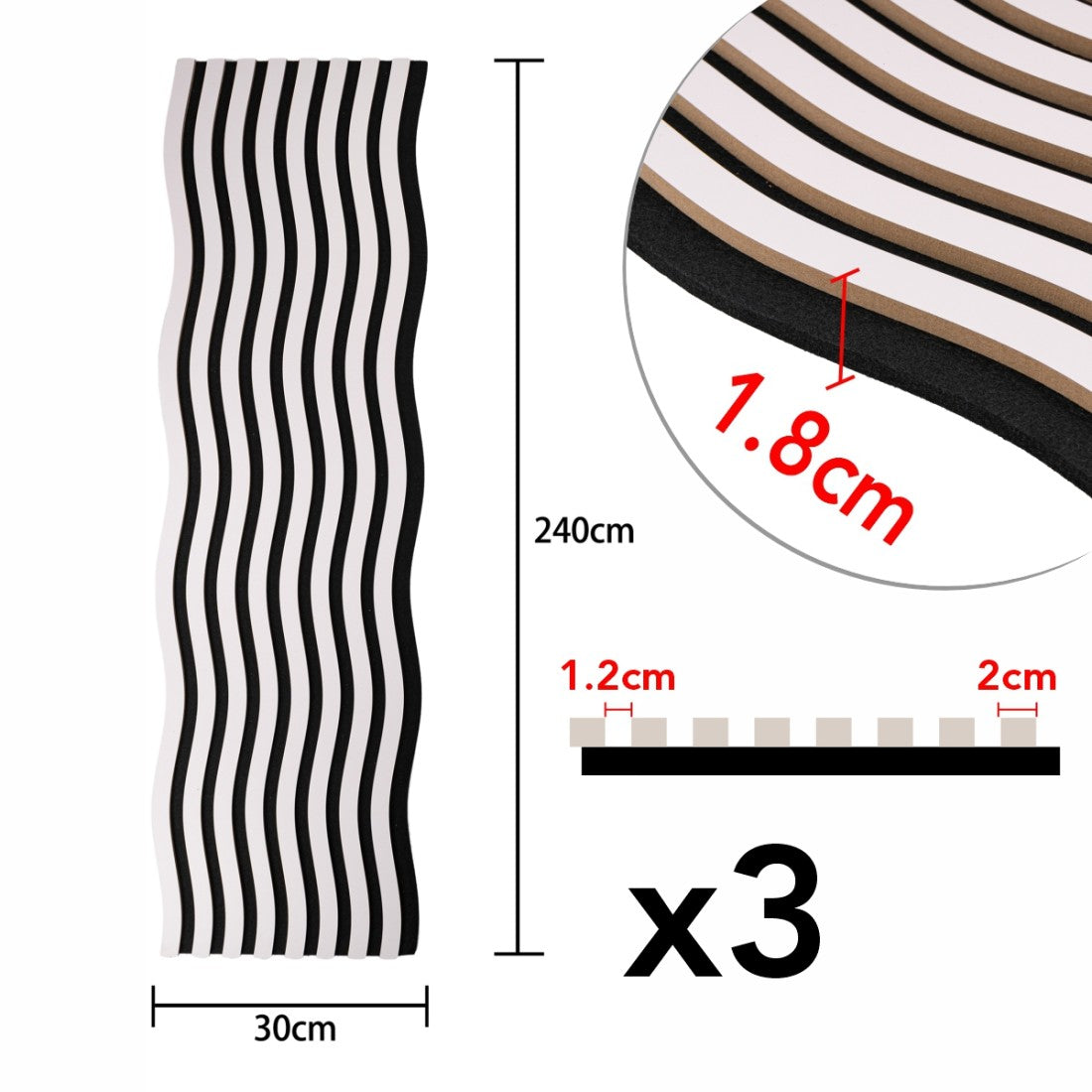 Set 3 Panouri riflaj acustic decorativ, MDF si pasla, Naimeed D6248, 240x30x1.8cm, Alb