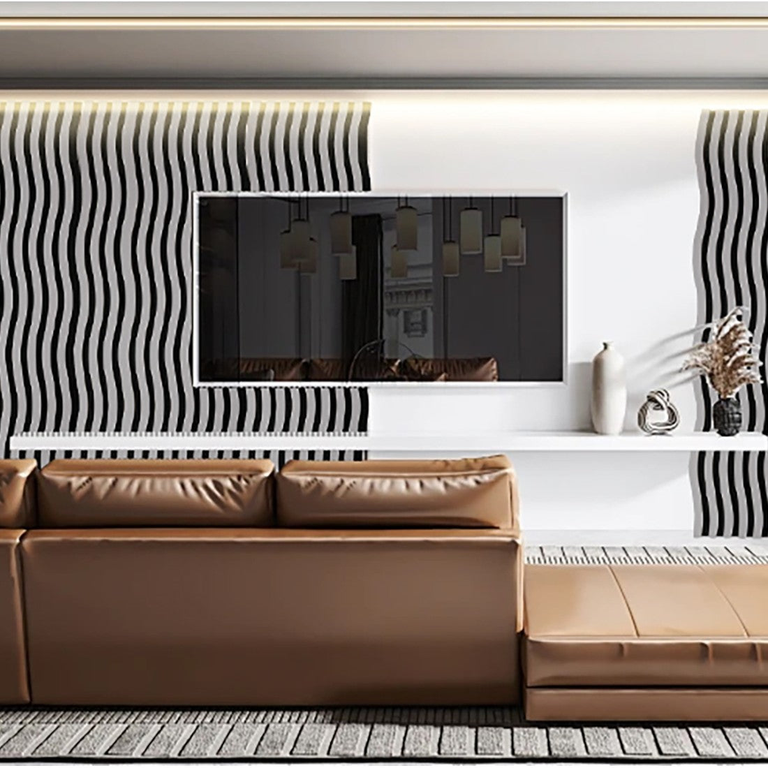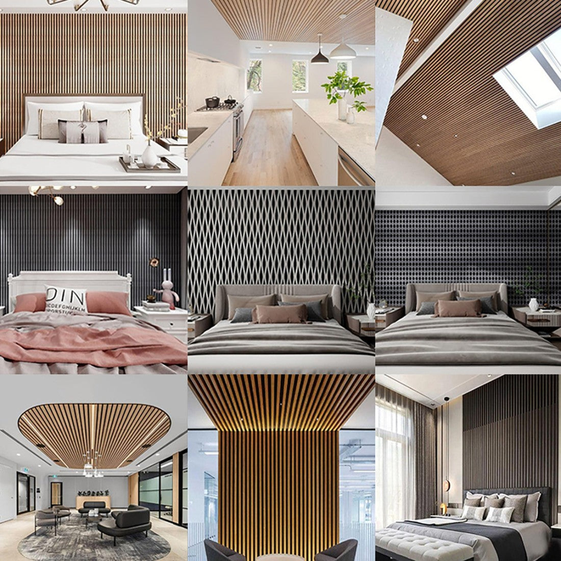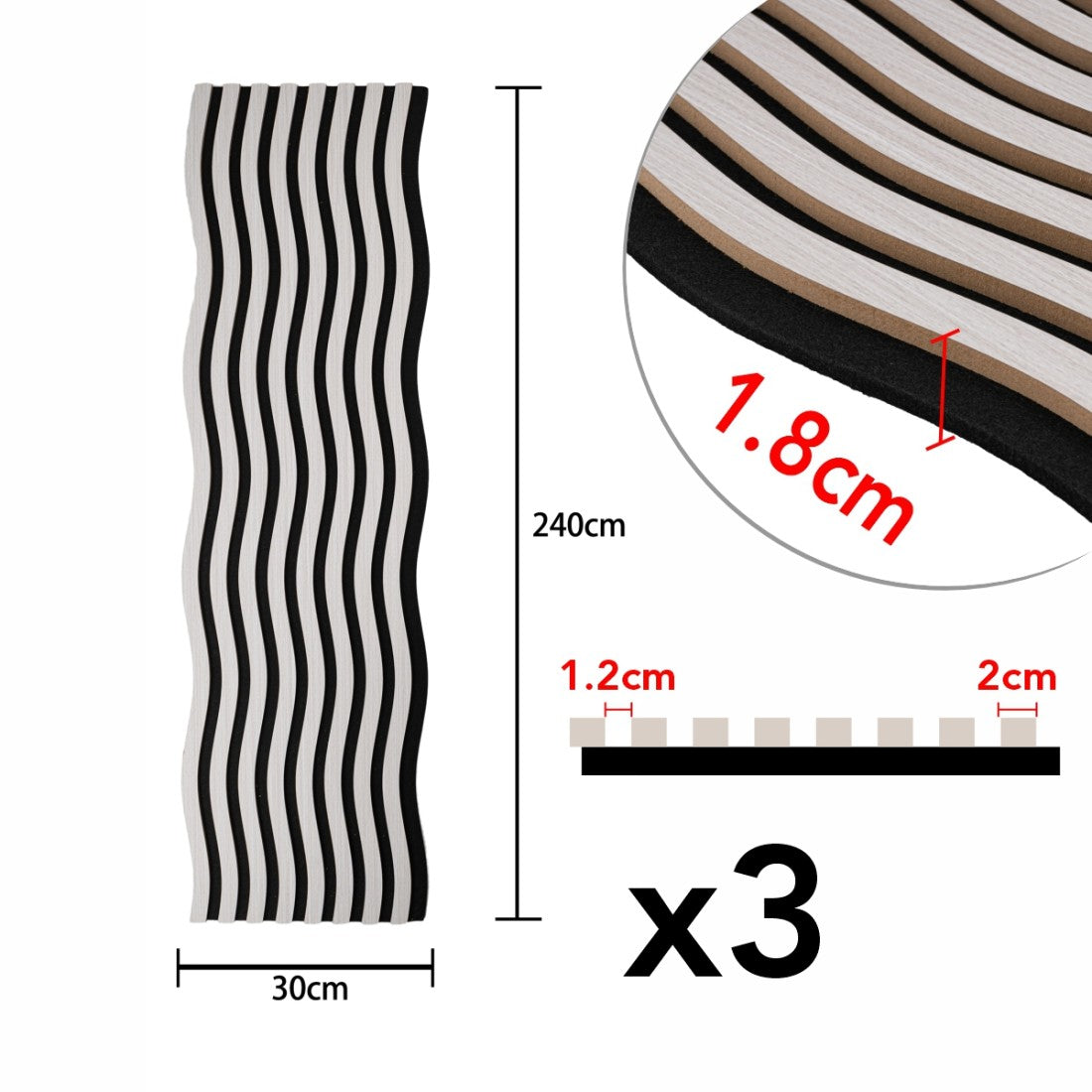 Set 3 Panouri riflaj acustic decorativ, MDF si pasla, Naimeed D6249, 240x30x1.8cm, Stejar Deschis