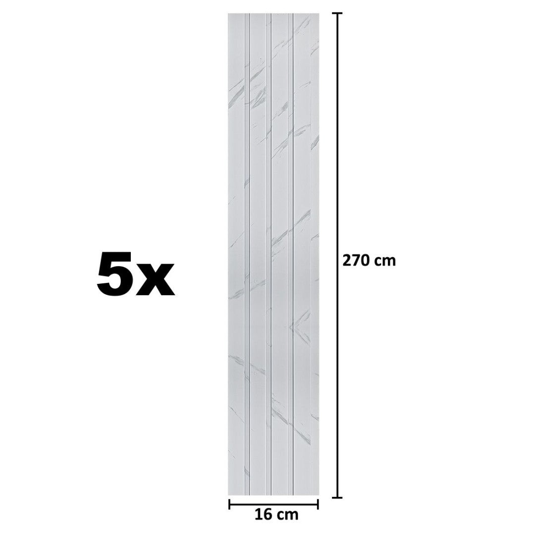 Set 5 panouri decorative, riflaj, polimer rigid, Naimeed D5471, 270x16x1cm, Alb