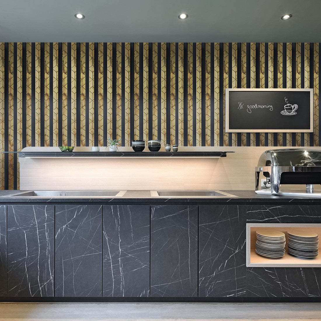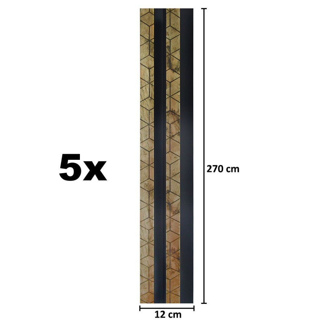 Set 5 panouri decorative, riflaj, polimer rigid, Naimeed D5475, 270x12x2cm, Negru/Auriu