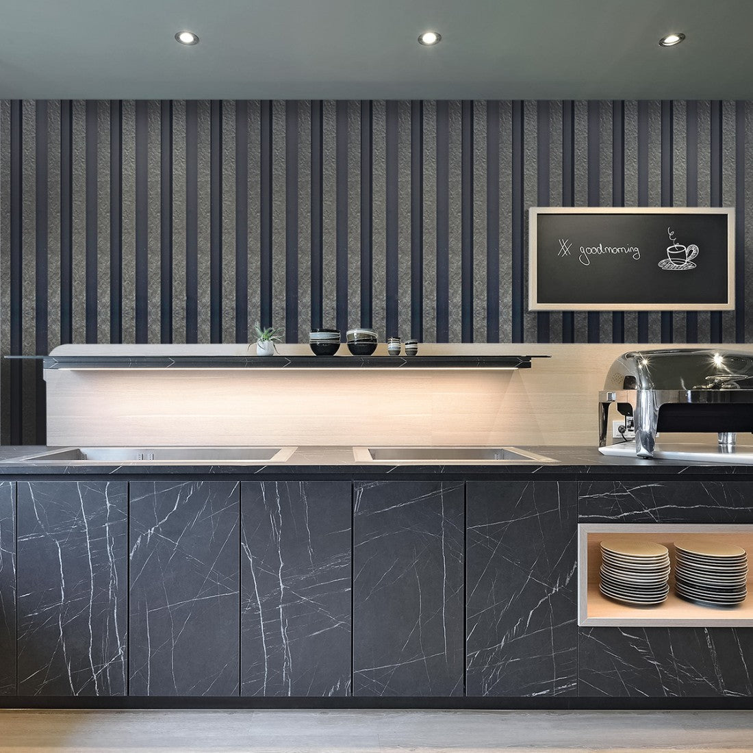 Set 5 panouri decorative, riflaj, polimer rigid, Naimeed D5478, 270x12x2cm, Negru