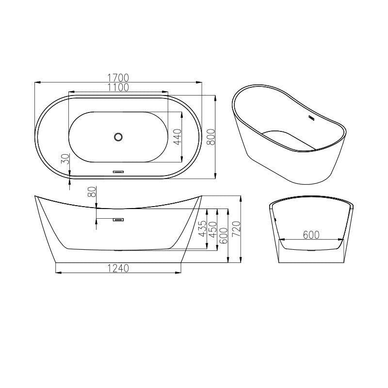 Cada freestanding ovala din acril BT5910-170cm