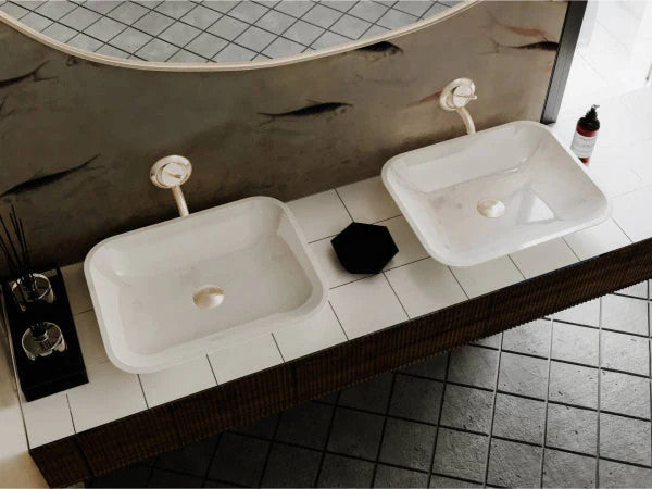 Componenta principală pentru producția chiuvetelor, căzilor și cădițelor de duș este marmura macinată 80% amestecată cu rășină poliesterică 20%. Proprietățile chimice și fizice ale acestui amestec permit o producție personalizată de calitate superioară. Suprafața lavoarelor, căzilor și cădițelor de duș este acoperită cu Gelcoat ISO NPG, ceea ce le face antibacteriene, igienice și ecologice.