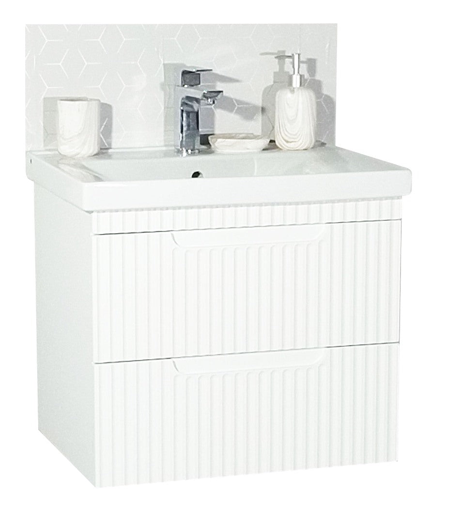 Lateralele dulapului sunt confecționate din PAL vopsit iar fetele sertarelor sunt din MDF înfoliat de calitate superioară. Grosimea lateralelor și a fetelor de sertar este de 16mm.