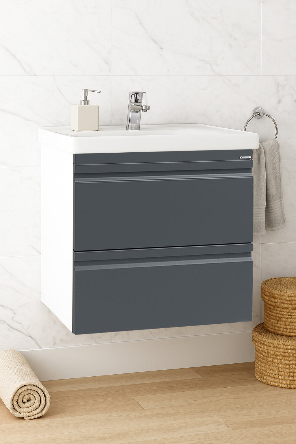 Mobilier Baie MDF kit și lavoar, Seria 786, Suspendat, Sertare, 60cm, Antracit