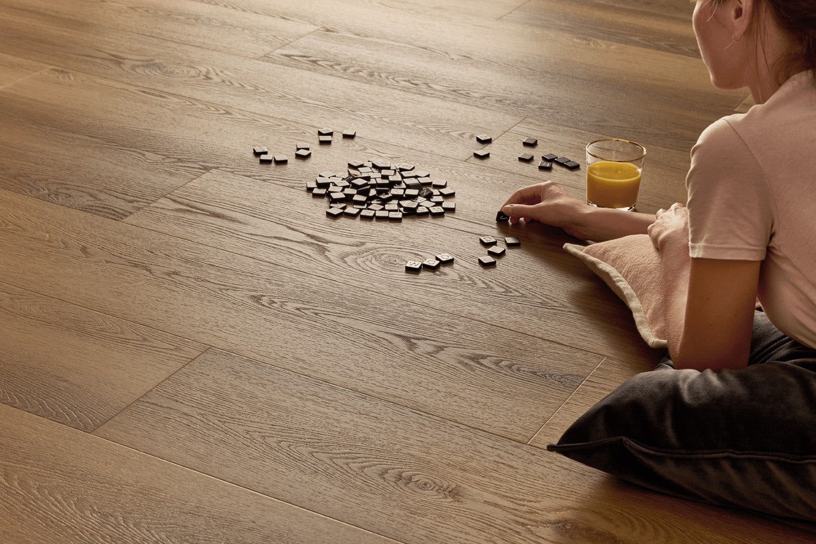 Pardoseala vinil cu continut mineral cu densitate mare (HD Mineral Core), strat de uzura 0,55 si Tytanium Nano Layer ANTISCRATCH, care mareste rezistenta la zgarieturi comparativ cu placile conventionale cu pana la 30%. Este o pardoseala flexibila si super silentioasa. Ideala pentru a fi montata acasa, dar si in spatii cu trafic intens.