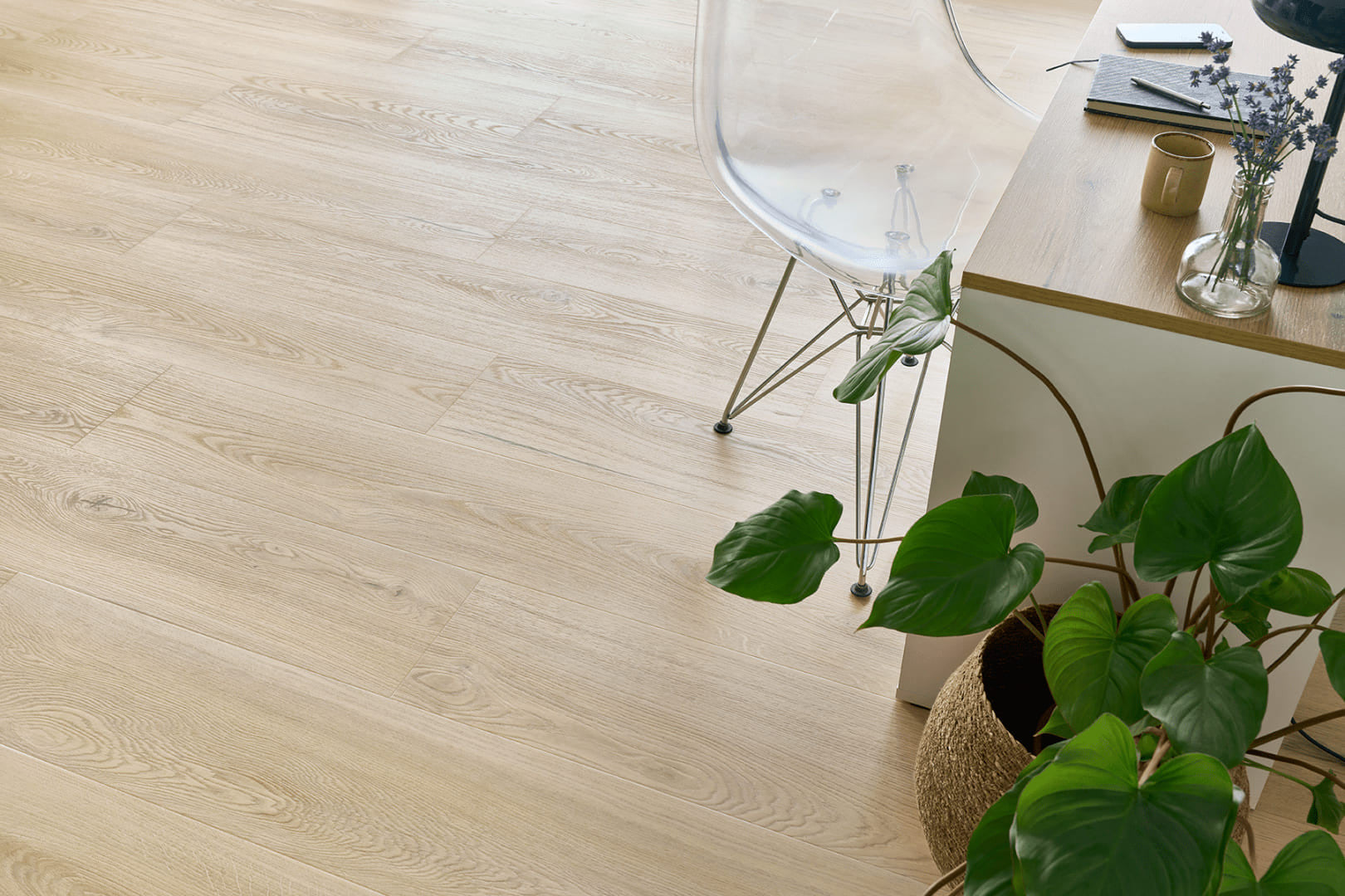 Pardoseala vinil clic cu continut mineral cu densitate mare (HD Mineral Core), strat de uzura 0,55 si Tytanium Nano Layer ANTISCRATCH, care mareste rezistenta la zgarieturi comparativ cu placile conventionale cu pana la 30%. Ideala pentru a fi montata acasa, dar si in spatii cu trafic intens.