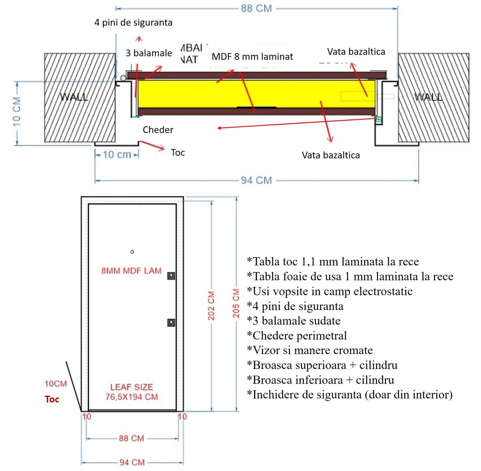 *izolatie in foaia de usa cu vata minerala (antifoc si nontoxic);