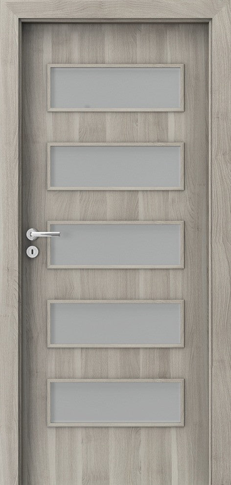 Miezul este fie fagure de stabilizare, fie PAL plin (opţiune contra cost). Atât rama cât și miezul sunt acoperite pe ambele feţe cu plăci HDF. Canturile foilor de ușă pe finisajul CPL HQ sunt acoperite cu bandă laminată în nuanţa canatului.