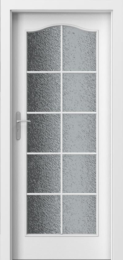 Constructia foii de usa este din fagure de stabilizare. Rama şi miezul foilor de usa sunt acoperite pe ambele fete cu placi profilate de HDF.