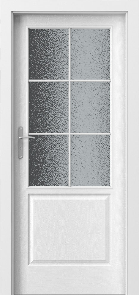 Constructia foii de usa este din fagure de stabilizare. Rama şi miezul foilor de usa sunt acoperite pe ambele fete cu placi profilate de HDF.