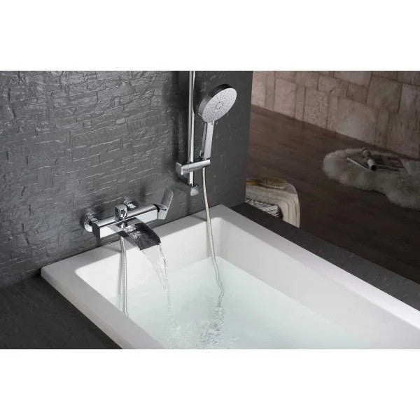 Bateria pentru cadă WAKEFIELD cu montaj pe perete, cascadă din cupru cromat, este o alegere ideală pentru cei care caută să aducă un plus de eleganță, confort și funcționalitate în baia lor. Cu un design spectaculos, materiale de înaltă calitate și funcționalități avansate, această baterie reprezintă o investiție pe termen lung în confortul și rafinamentul băii dumneavoastră.