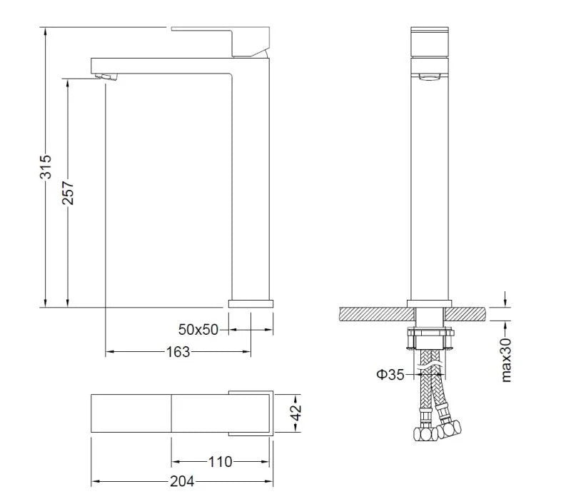 Cu o înălțime impunătoare de 31.5 cm, această baterie se montează cu ușurință pe blat, oferind un aspect rafinat și spațios. Realizată din cupru turnat, un material cunoscut pentru durabilitatea și rezistența sa sporită, această baterie promite să reziste testului timpului și utilizării îndelungate.