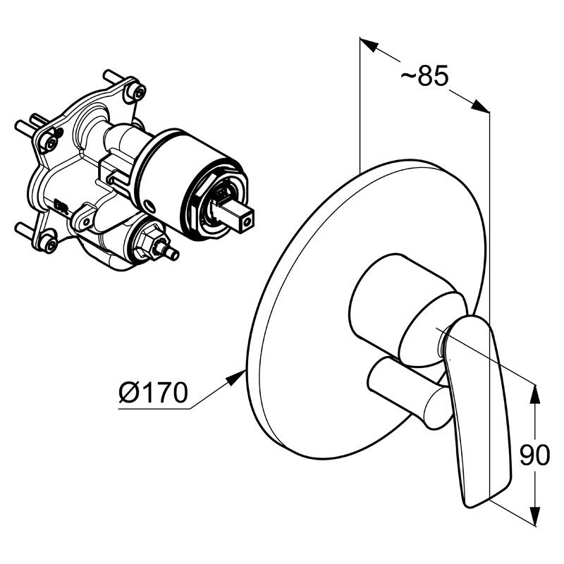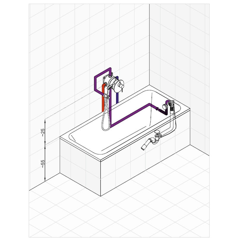 Este un comutator pentru 2 consumatori: se poate utiliza cu un dus fix + unul mobil sau cu o pipa de umplere pentru cada + un dus (vezi produse asociate).