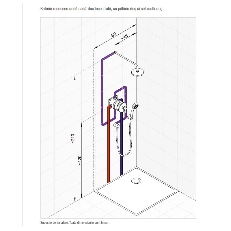 Baterie monocomanda pentru cada si dus, cu montaj incastrat in perete, finisaj cromat: