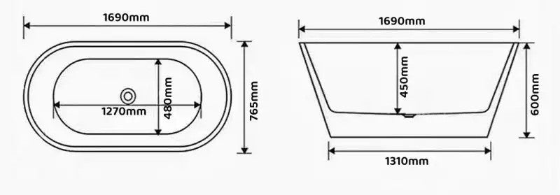 Cada baie freestanding BELIZE 170x75x58cm, alba, ovala, acril sanitar ranforsat cu fibra de sticla
