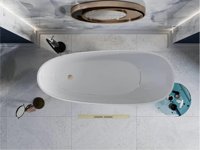 Cadă free-standing MARINA din compozit alb lucios obținut prin șlefuire.