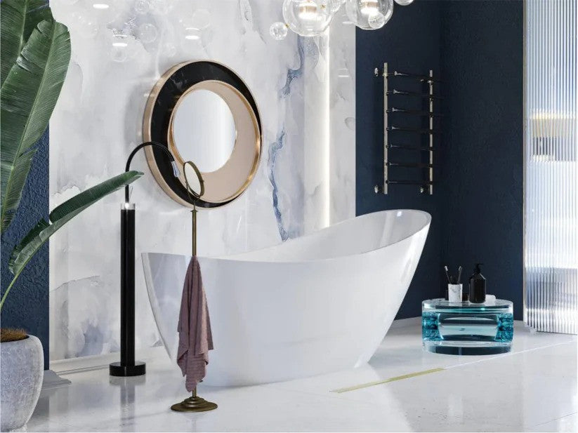 Cu un design futurist si o formă ovală foarte confortabilă, cada MARINA transformă baia într-un loc de relaxare.