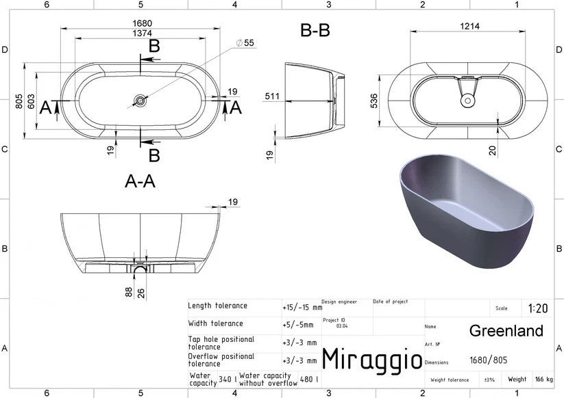 Cadă Greenland free-standing din compozit negru lucios obținut prin șlefuire.