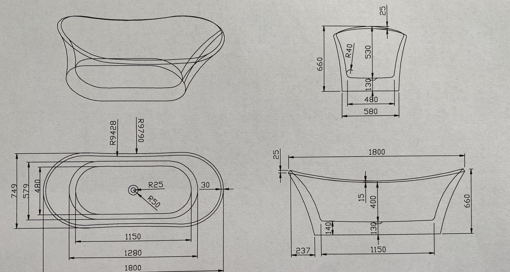 Cada freestanding realizata din material acril sanitar glossy este construita pe structura de fibra de sticla.