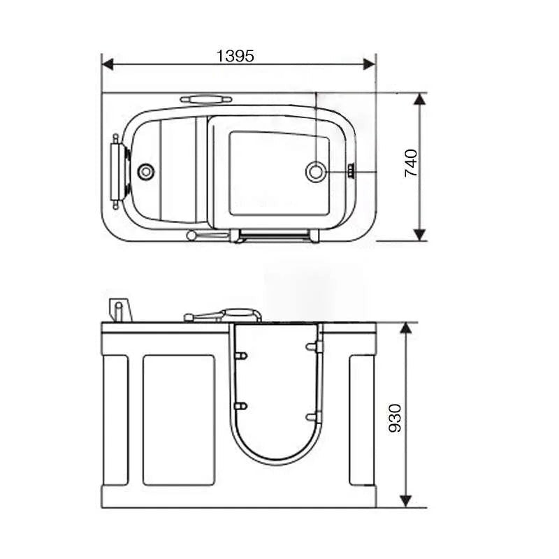Confort si siguranta pentru utilizatorii cu nevoi speciale. Cu o inaltime ergonomica de 93 cm si dimensiuni generoase de 140 cm lungime si 74 cm latime, aceasta cada ofera un spatiu suficient si sigur pentru o baie confortabila. Adancimea de 46 cm si suprafata cubica de 0,31 m² sunt perfect adaptate pentru a facilita intrarea si iesirea in conditii de siguranta.