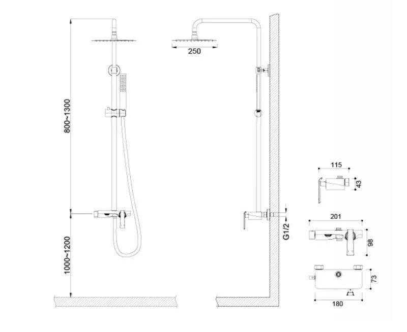 Conținut pachet: 1 x Coloană de duș,1 x cap de duș,1 x furtun, 1 pară duș,1 x manua de utilizare și montaj