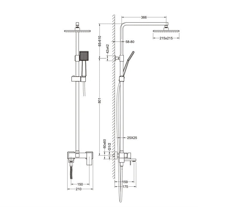 Conținut pachet: 1 x Coloană de duș cu pipă cadă pliabilă,1 x cap de duș 230×230,1 x furtun, 1 pară duș,1 x manua de utilizare și montaj