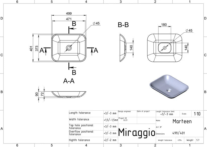 Lavoar pe blat Marteen, Miraggio alb lucios