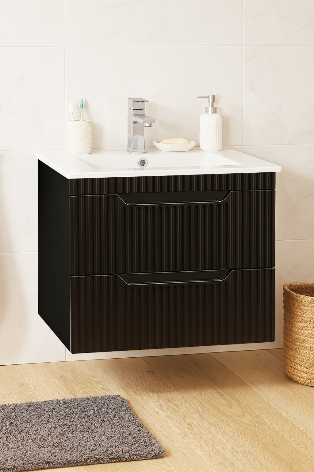 Cutia dulapului este confecționată din PAL iar fetele sertarelor sunt din MDF de calitate superioară. Grosimea lateralelor și a fetelor de sertar este de 16mm.