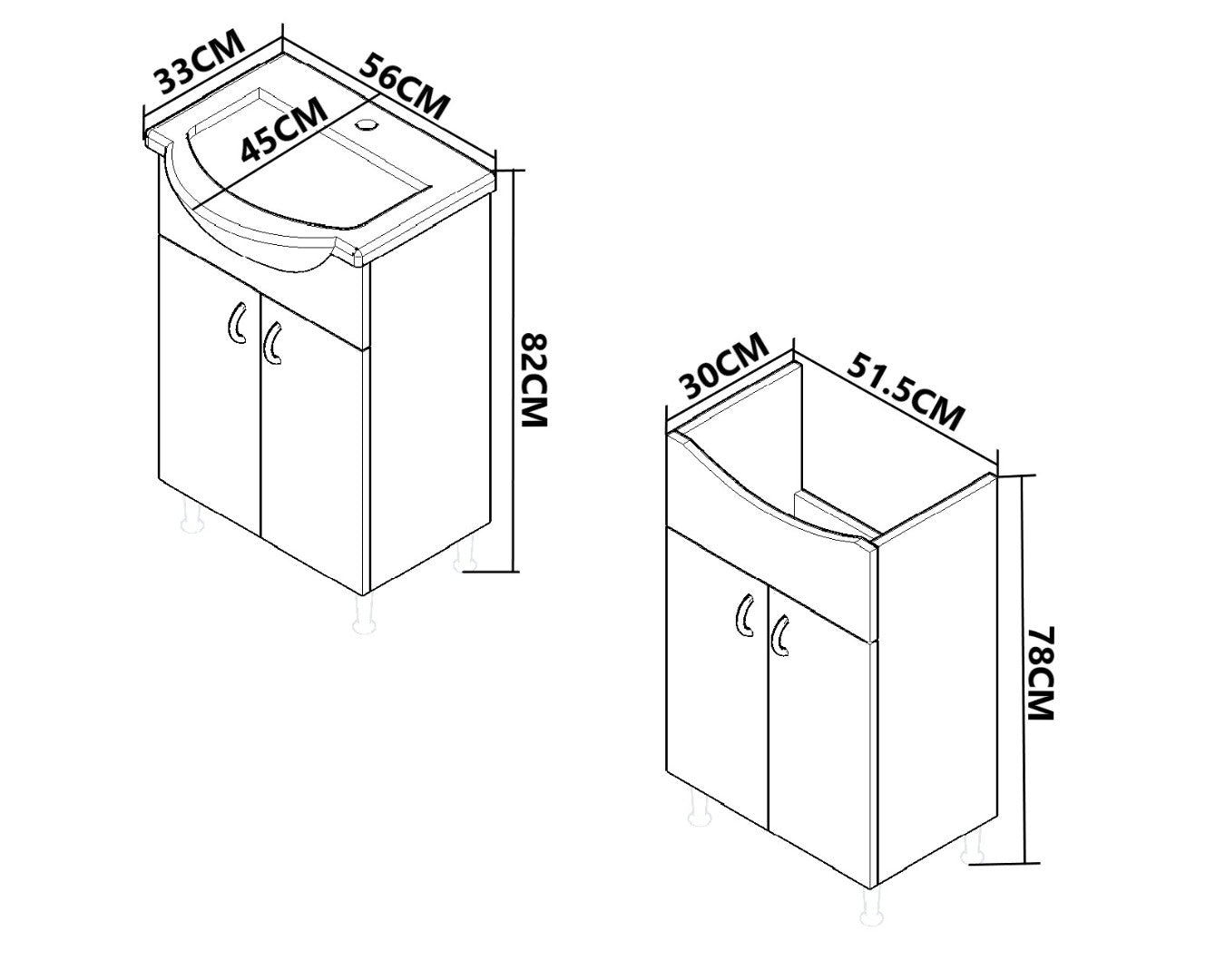 Mobilier Baie eco și lavoar, Seria 001, Cutie Carton, 55cm, Alb