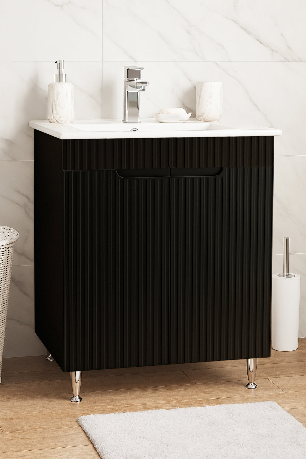 Mobilier Baie MDF și lavoar, Seria 033, 60cm, Negru