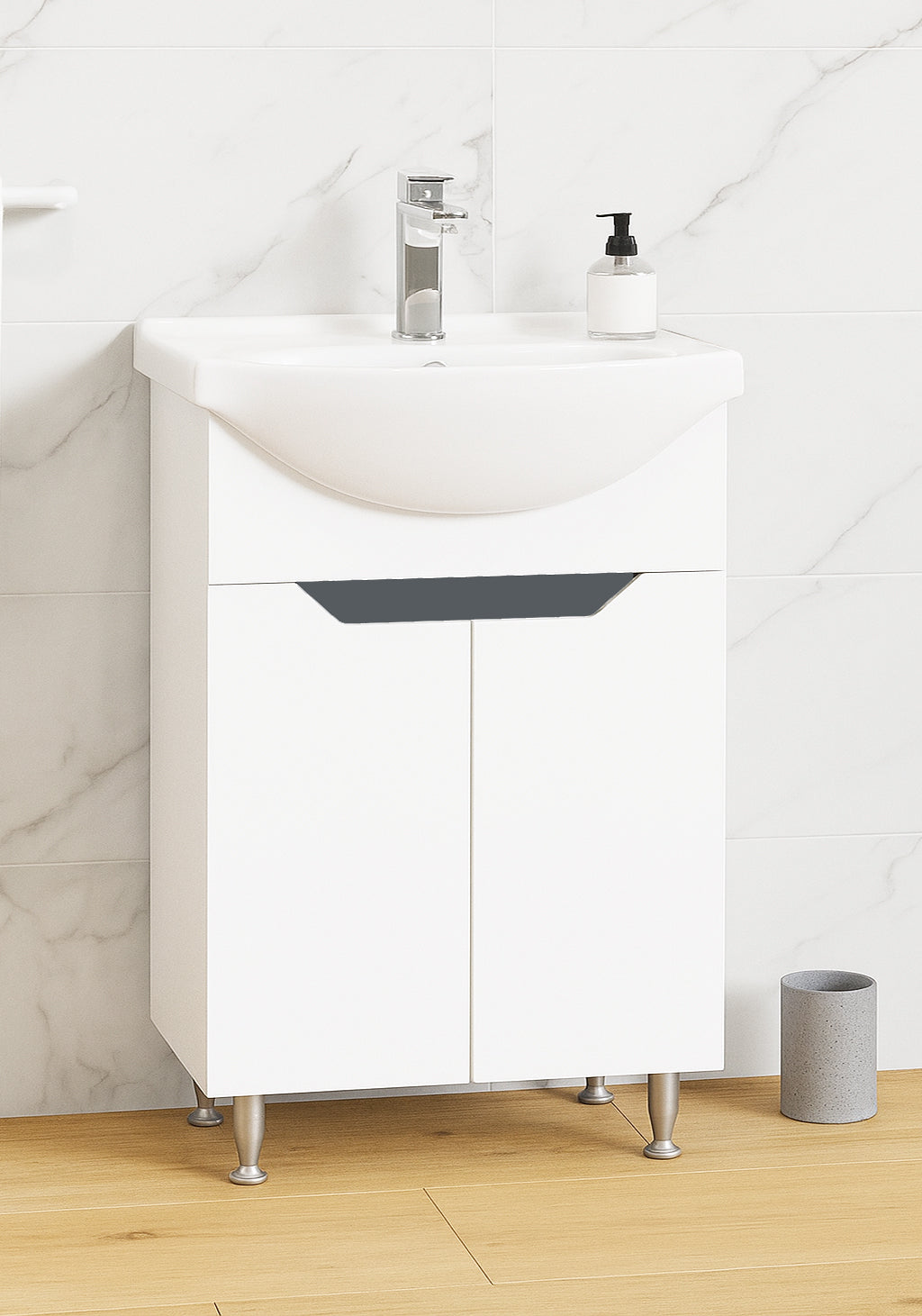 Mobilier Baie MDF și lavoar, Seria 050, 55cm, Alb/Antracit