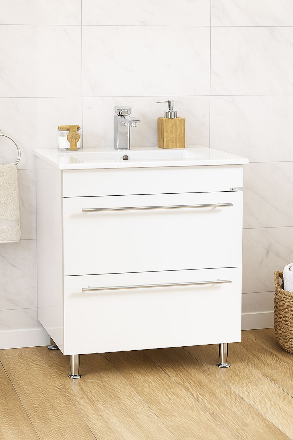Mobilier Baie MDF și lavoar, Seria 054, Sertare, 70cm, Alb