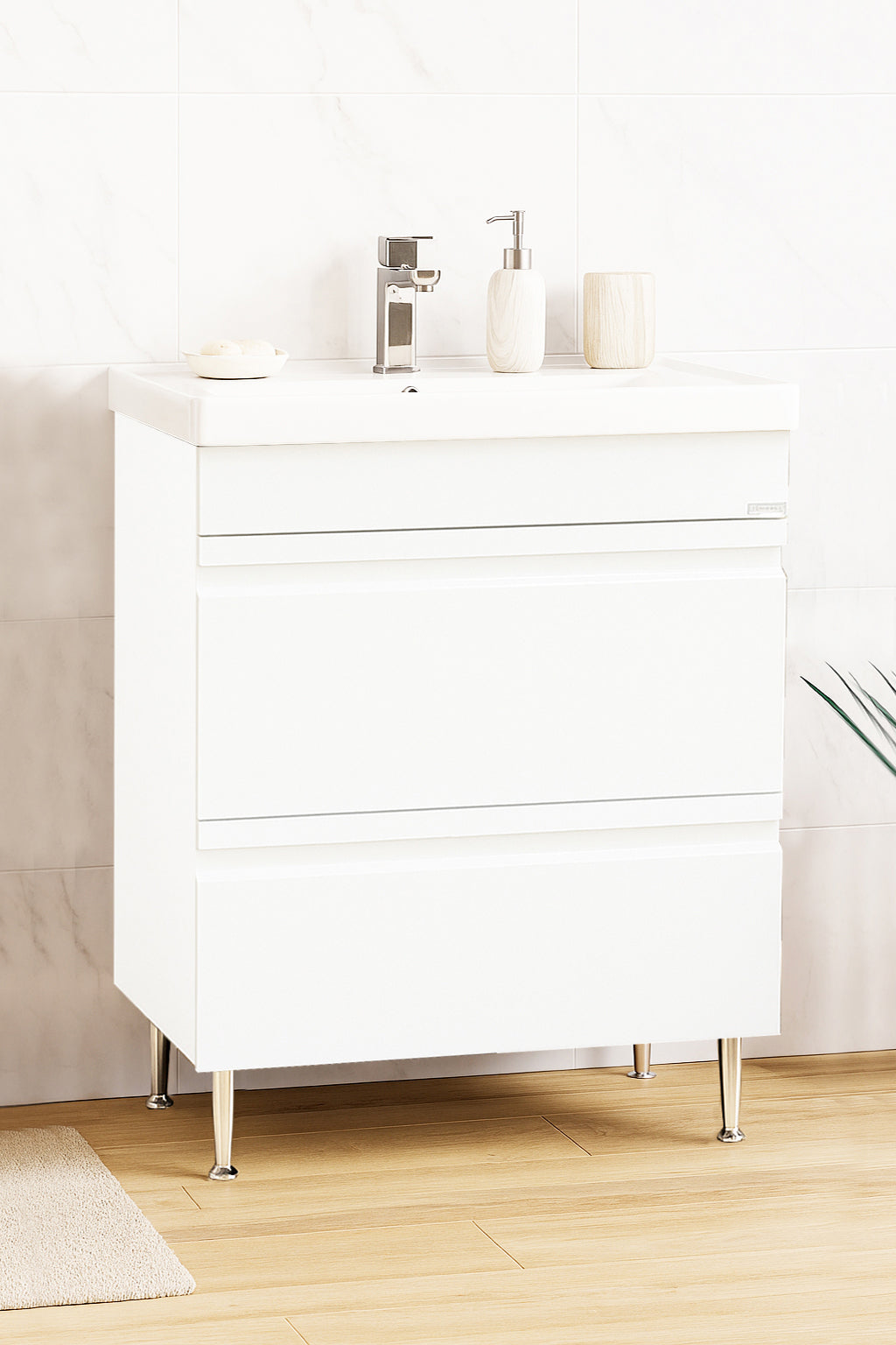 Mobilier Baie MDF și lavoar, Seria 786, Sertare, 65cm, Alb
