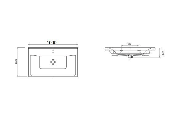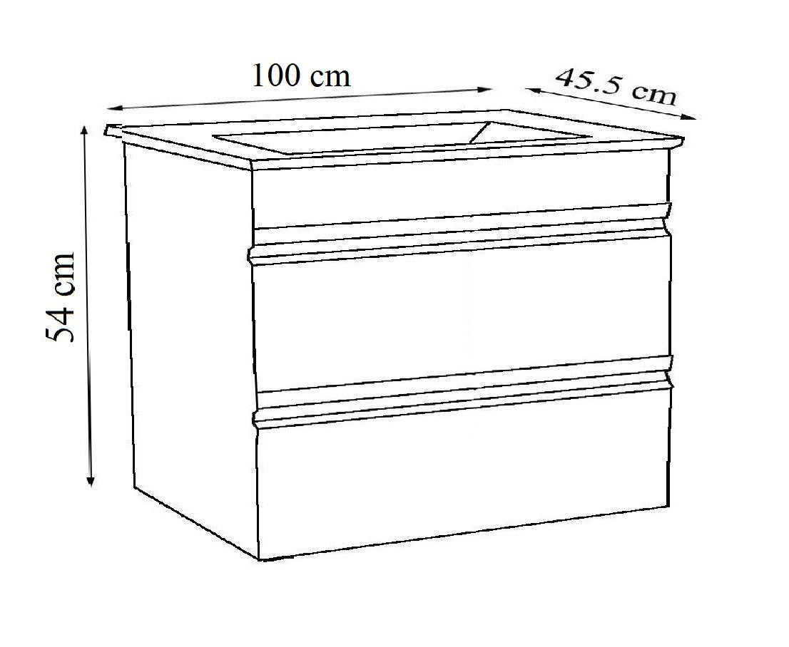 Mobilier Baie MDF și lavoar, Seria 786, Suspendat, Sertare, 100cm, Alb