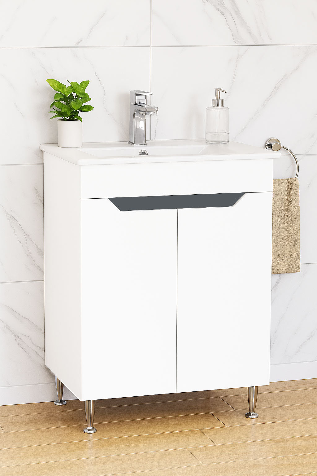 Mobilier Baie MDF Kit și lavoar, Seria 056, 60cm, Alb/Antracit