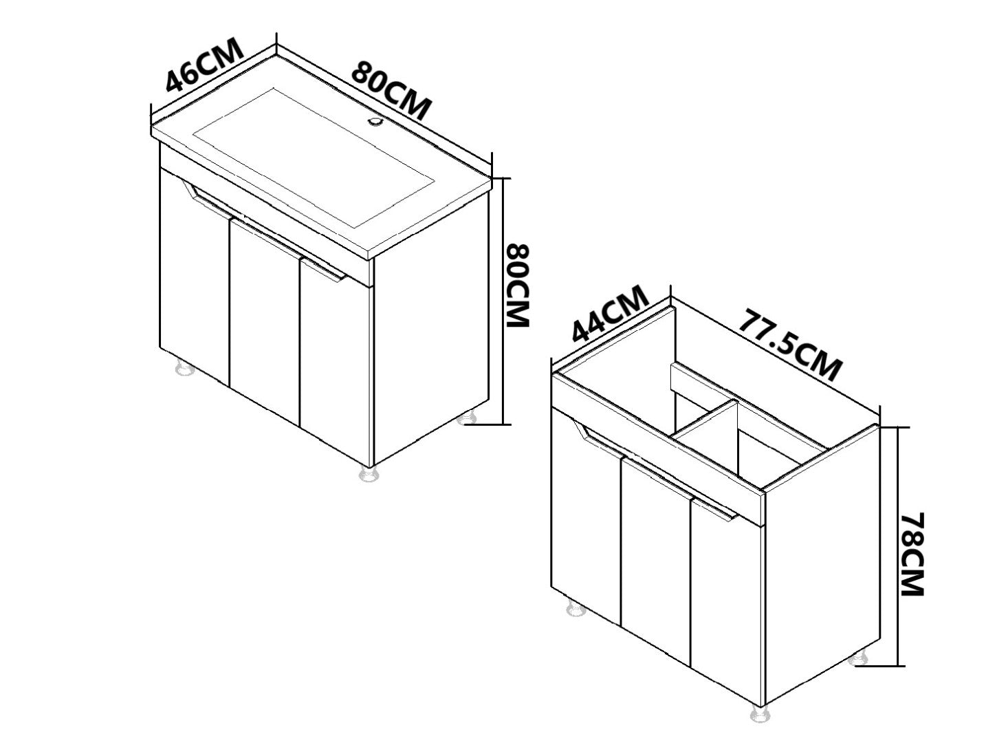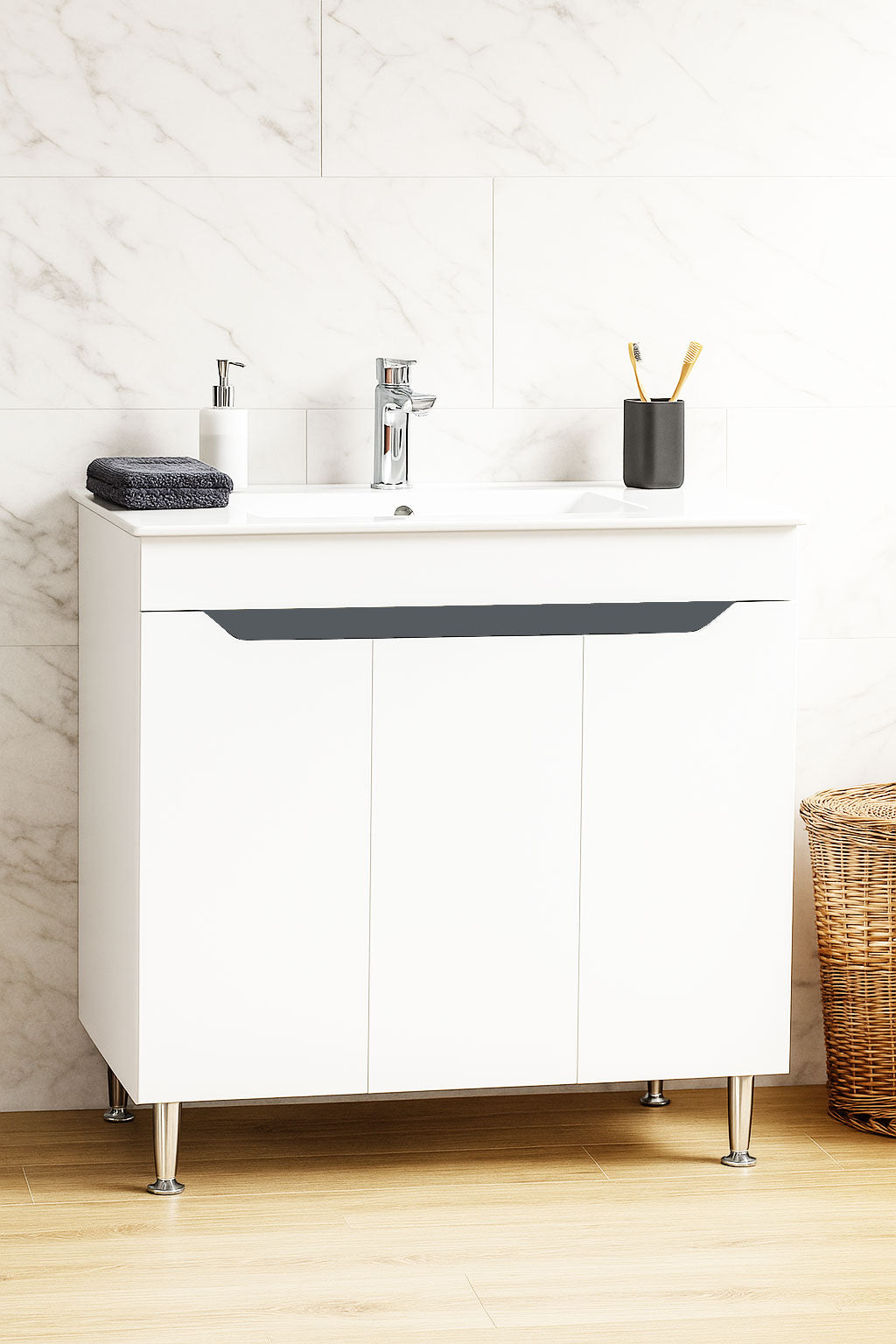 Mobilier Baie MDF Kit și lavoar, Seria 056, 80cm, Alb/Antracit