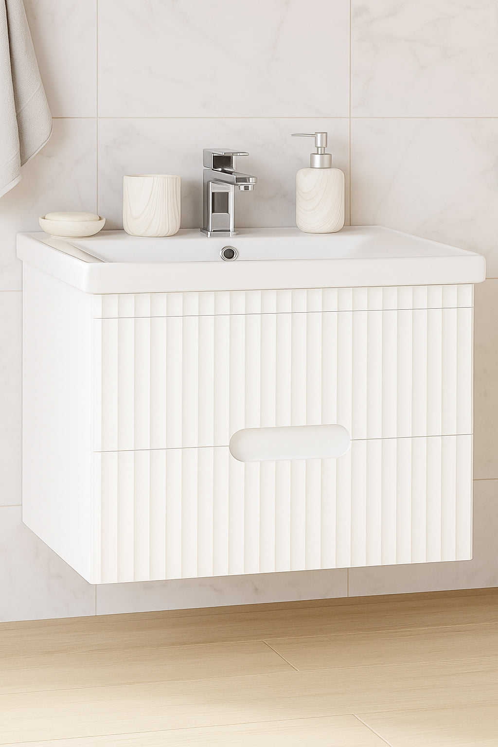 Recomandam aplicarea unei benzi de silicon sanitar intre baza si lavoar, intre lavoar si perete.