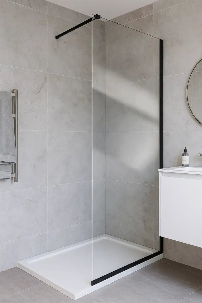 Profilul negru mat ofera rezistenta si un aspect rafinat, completand perfect designul minimalist al paravanului. Sistemul de fixare este solid si sigur: profilul asigura o prindere ferma atat in perete, cat si in partea inferioara, mentinand stabilitatea structurii.