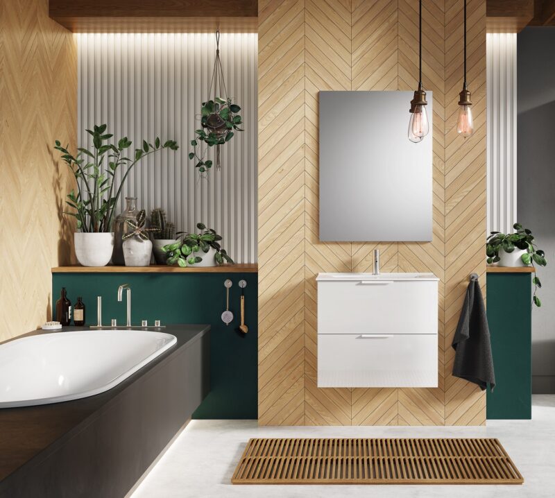 Set Dulap Baie Alb de 80 in finisaj lucios cu lavoar încorporat, model Etna, transformă aspectul băii dvs. Designul modern și finisajul mat într-o nuanța albă adaugă o notă de rafinament, potrivită pentru orice tip de decor în baie.