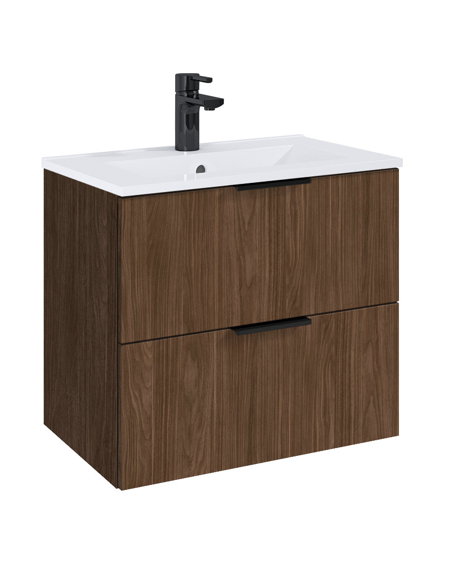 Set Dulap de Baie cu Lavoar Încorporat – Nuc Mat, 60 cm- Etna cu 2 Sertare