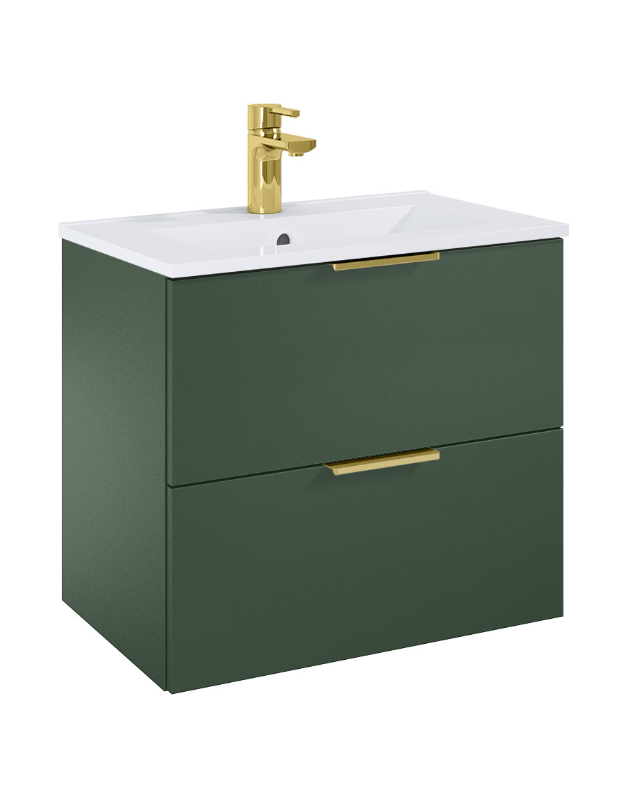 Set Dulap de Baie Verde Mat – cu Lavoar Încorporat, 60 cm- Etna cu 2 Sertare